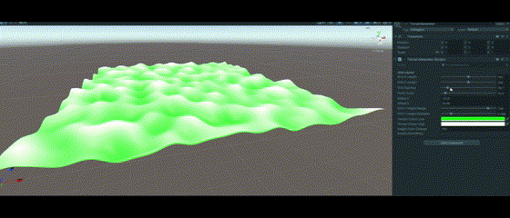 The gradient of values from Mathf.PerlinNoise() allows for the projection of height values onto a mesh with a visual cohesion and flow.
